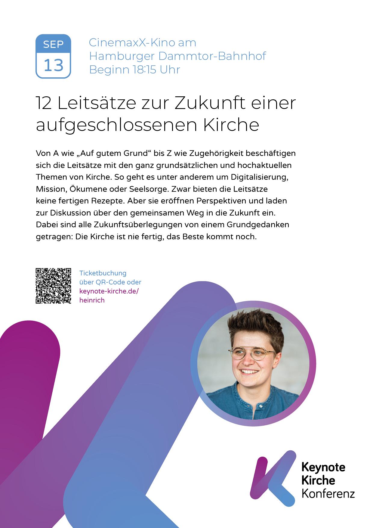 Mit der Glaubenskonferenz geht die Neuapostolische Kirche neue Wege. Zwölf Stunden Impulse und Musik erwarten das Publikum im Hamburger Kino! Speakerinnen und Speaker aus verschiedenen Lebensbereichen und mit unterschiedlichen Glaubenshintergründen laden dazu ein, sich mit Glauben und dem Leben als Christ zu befassen. Ein bunter Mix von Menschen und Themen, der dem Motto der Keynote Kirche gerecht wird: Inspirierend. Verbindend. Ökumenisch.